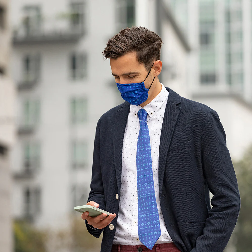 Complement your outfit while commuting on bus, rail or bike with a Metro Blue Icons Neck Tie.